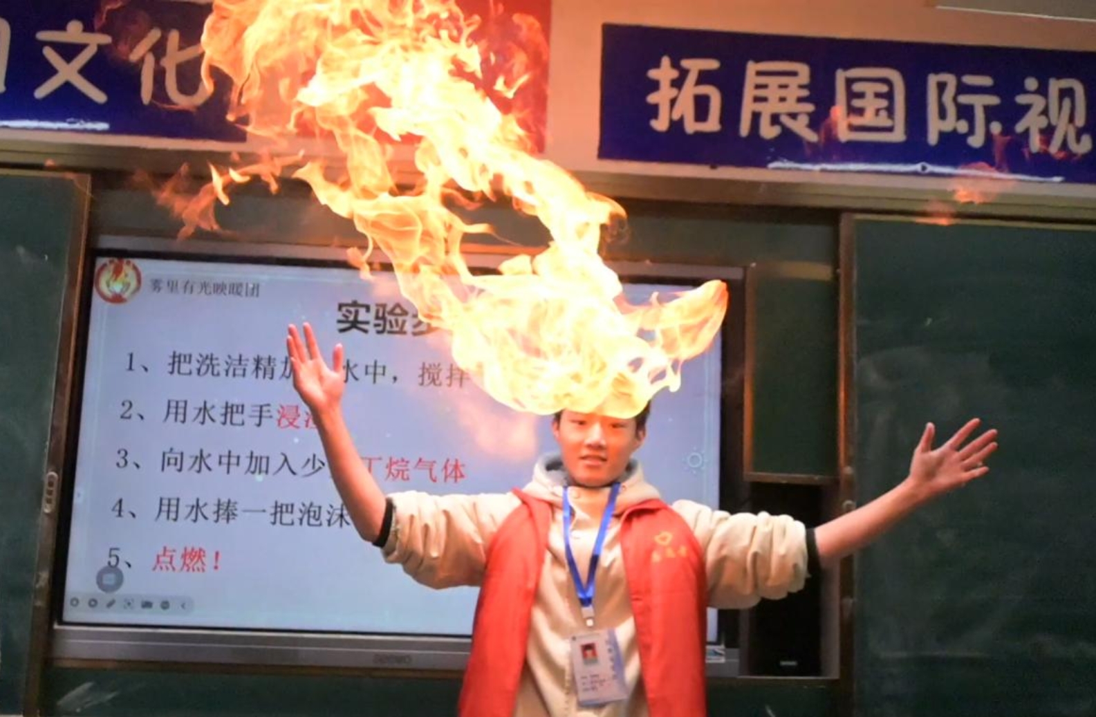 活动现场,甲烷泡沫被点燃后生成近一米高的火焰,烟雾喷发推倒纸杯,还有自制纸杯投影仪等趣味实验轮番登场。志愿者采用简单易操作的方式,把复杂的科学原理转化为直观的体验,让孩子们沉浸式感受科学的魅力。