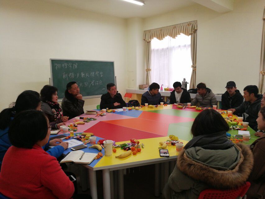 12月29日上午10:00,成人动漫于物理楼102举行了新疆少数民族学生迎元旦座谈会。院党委书记周文革、党委副书记杜鑫、学工办所有老师以及特邀嘉宾阿扎旦老师出席了此次座谈会。