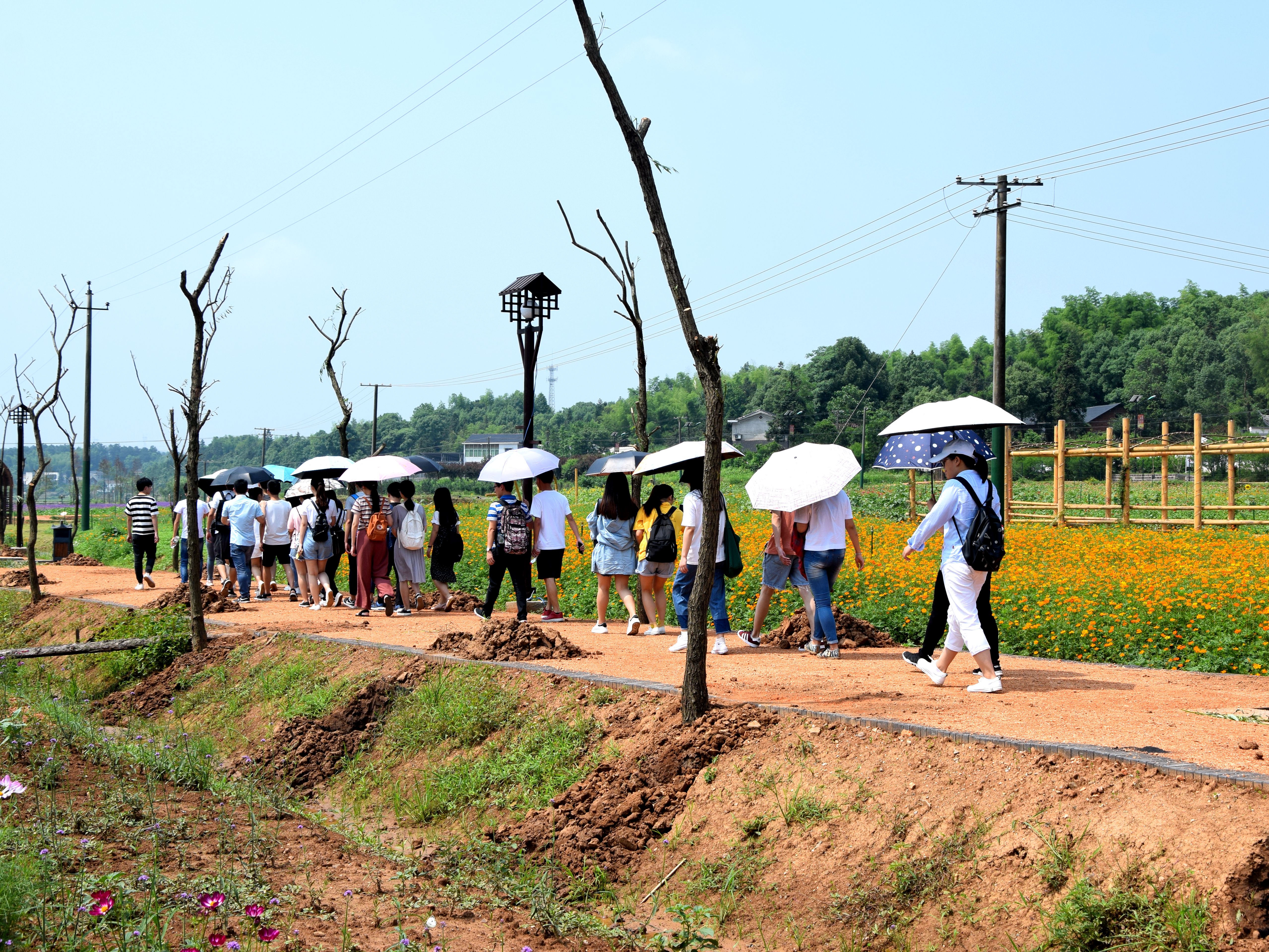 座谈会结束后,支部的同学们来到响水村产业园,参观了“百花园”、“百草园”等新农村建设成果。徜徉在田野阡陌,感受着新时代的青山绿水,同学们对党的农村政策和“乡村振兴”战略有了更深层的体会,从响水村的建设发展看到了民族伟大复兴的壮阔前景,预备党员罗秀坤同志深情地说到:“绿水青山的建设离不开我们党的领导,更离不开人民群众的拥护与付出。”社会实践活动在夕阳中结束。